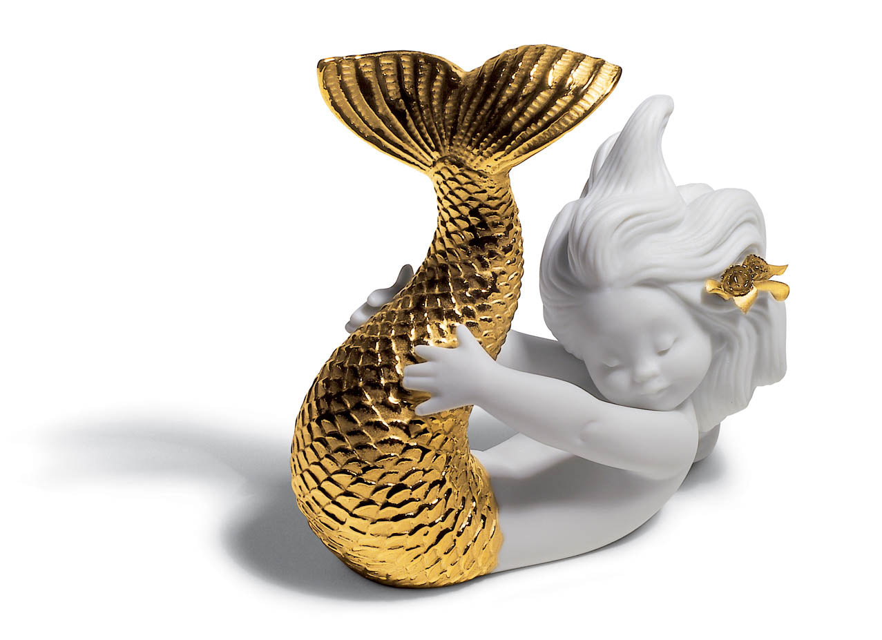 Playing at Sea Mermaid Figurine. Golden Lustre - From Lladro Presented By Allamoda Furniture