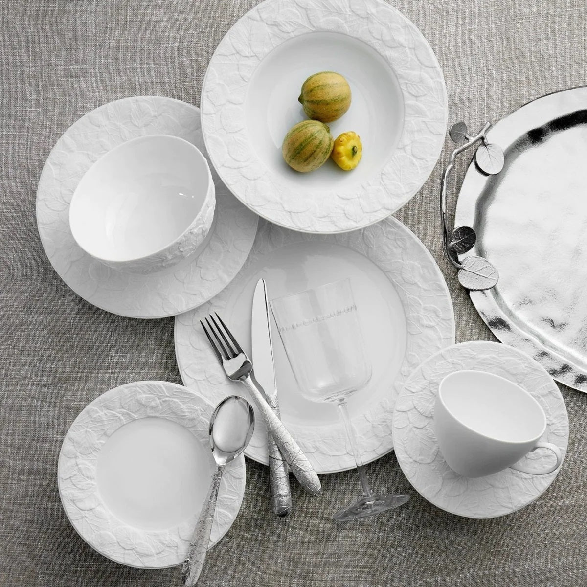 The Forest Leaf Collection takes its inspiration from the intricacies of form and texture found in foliage from around the world. By interpreting plant forms in cast metal, Aram presents work, which is evocative of a natural environment transformed and redefined.