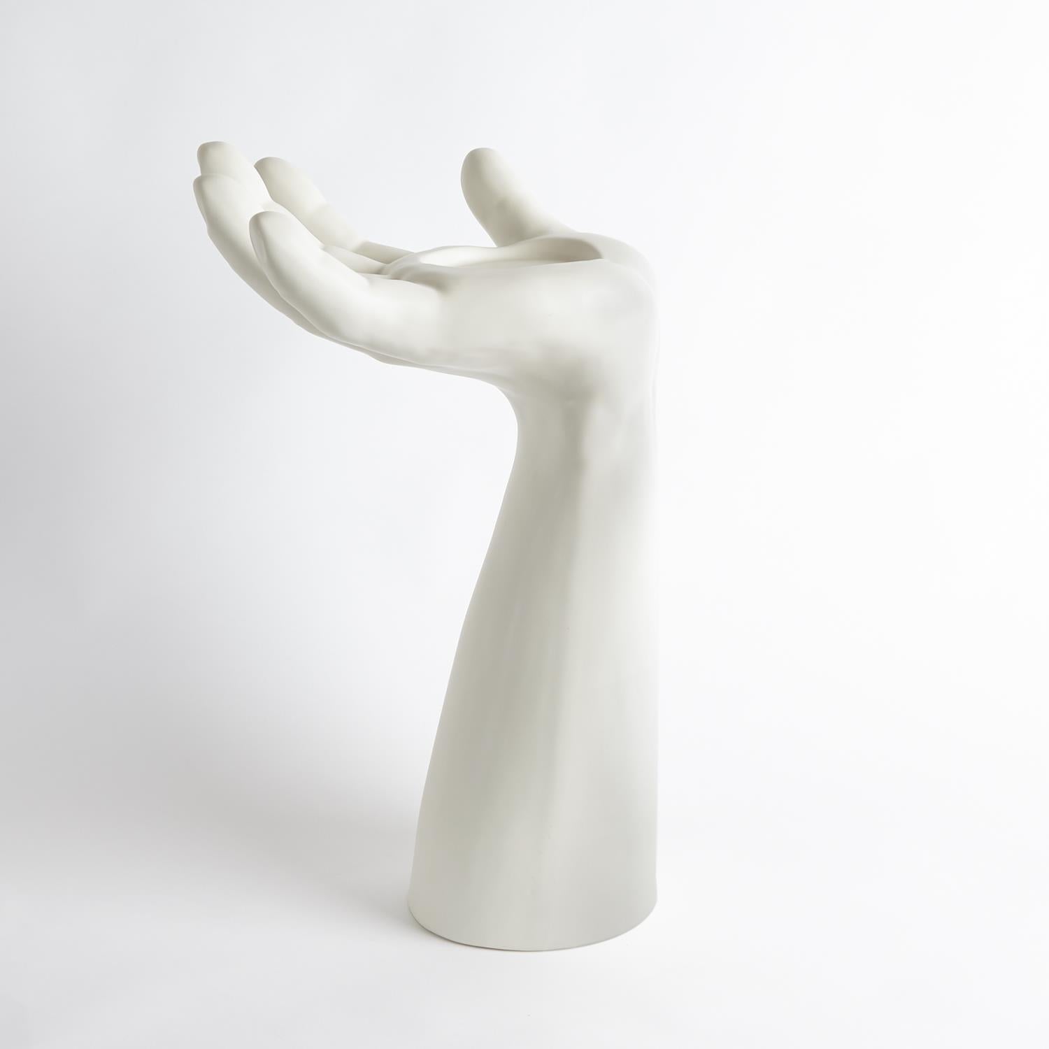 Artfully sculpted expressive hands are realized in fine Portuguese ceramic. Each hand can hold a 4 inch pillar candle or the accompanying bowl (Sold separately; 7.10103). Each hand is sold individually