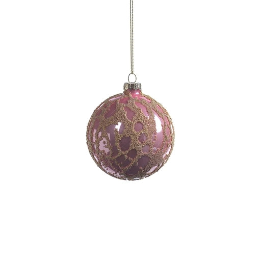 Pink Ball Ornament w/ Abstract Gold Beads - 3" - From Zodax Presented By Allamoda Furniture