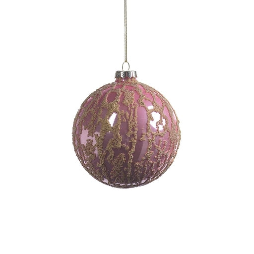 Pink Ball Ornament w/ Abstract Gold Beads - 4" - From Zodax Presented By Allamoda Furniture
