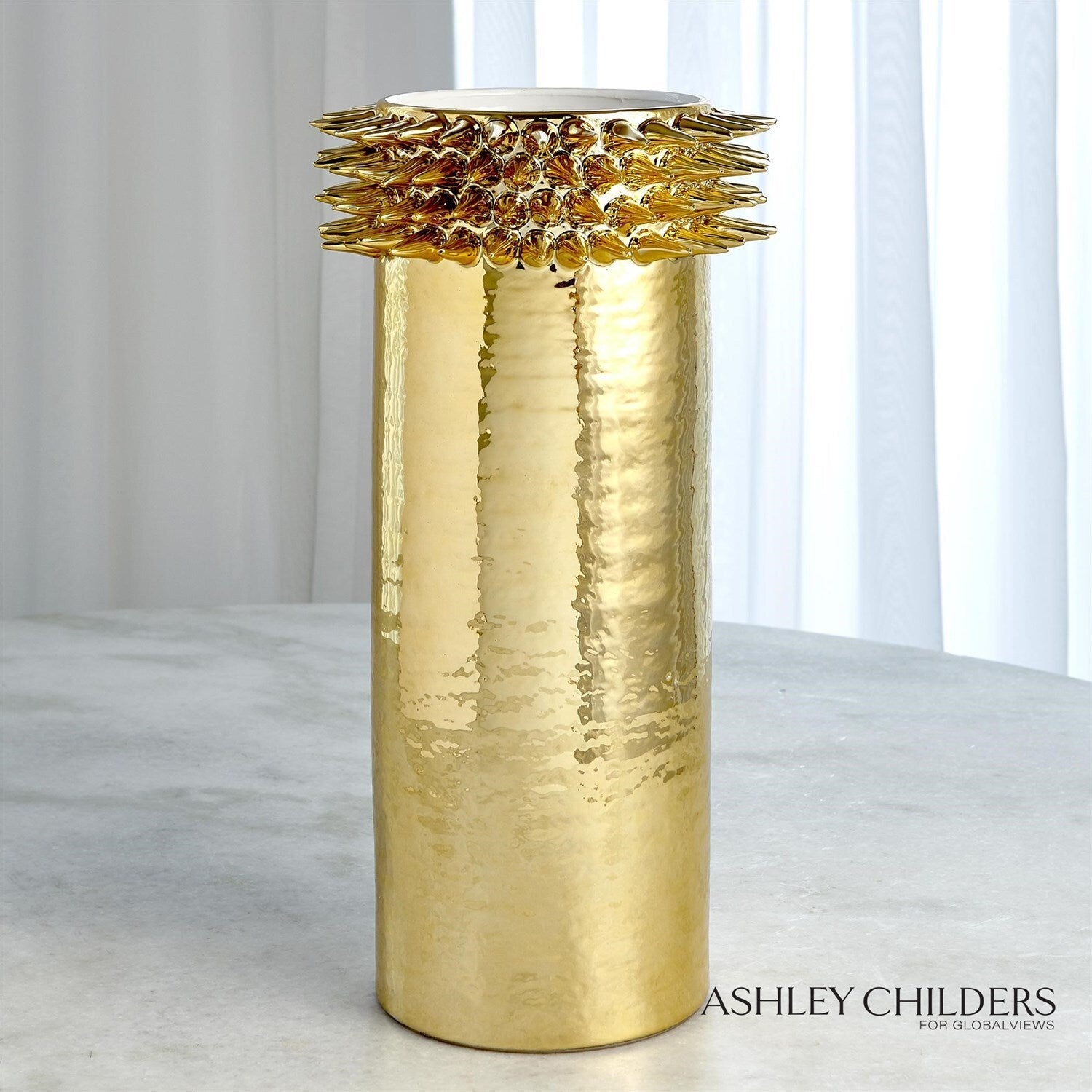 Spike Cylinder Vase-Gold-Lg - From Global Views Presented By Allamoda Furniture