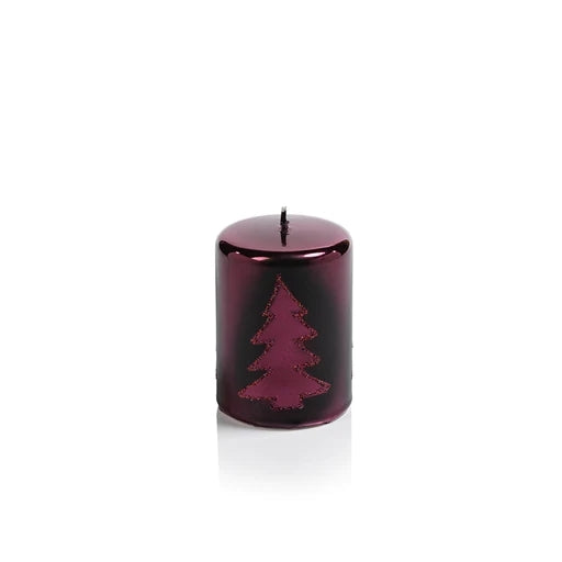 Tree Design Metallic Pillar Candle- Burgundy 3x4