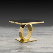 Onyx Luxury Collection presented by Allamoda Furniture offers End Table with a titanium gold polished stainless-steel base and matching frame with a beveled 12mm black glass top.