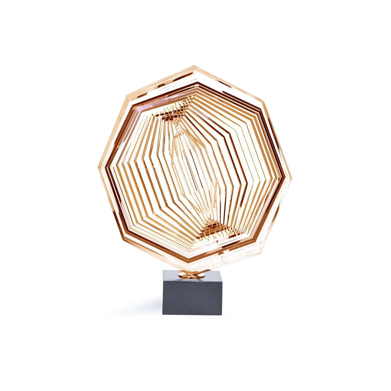 Melodious Tune-3 Modern Sculpture presented by Roberto Grassie Furniture crafted with variation of rose gold, silver and titanium gold painted stainless steel.